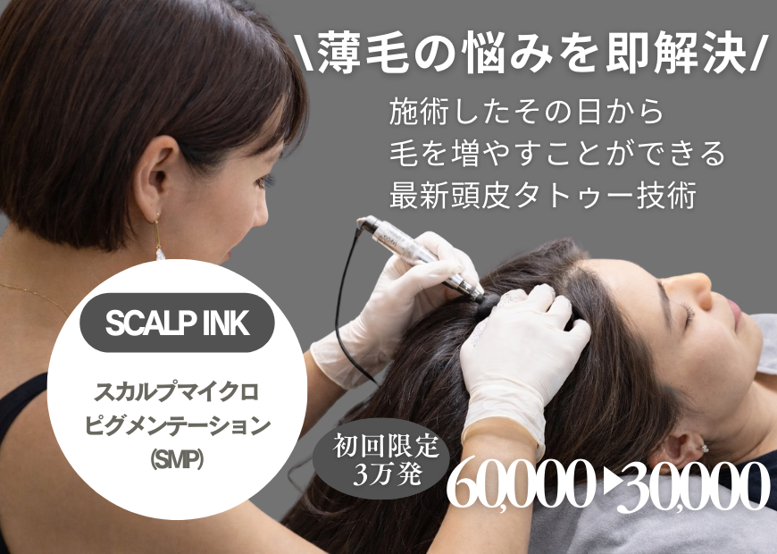 スカルプインクは、頭皮にごく小さなドット状の色を入れることで、髪の影を自然にプラスし、分け目や生え際の透け感を目立ちにくくする美容ケアです。